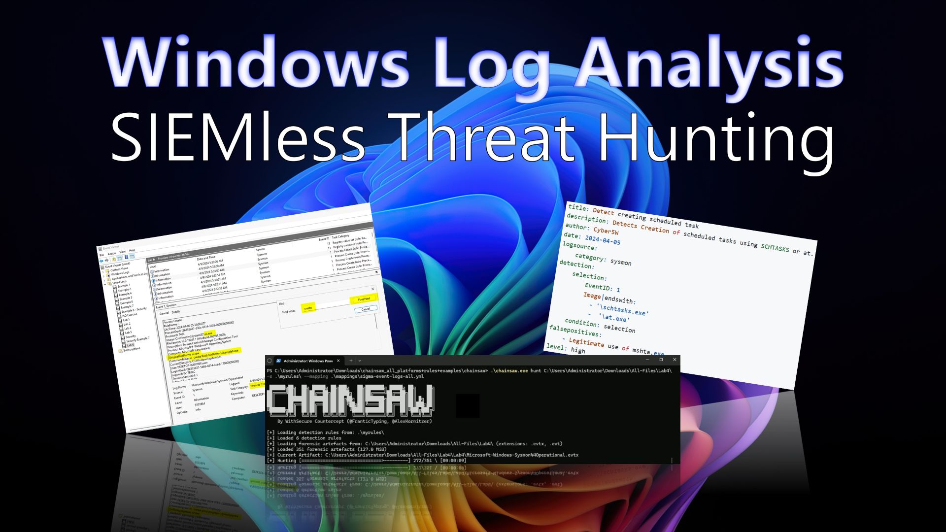 Yes… we can learn the basics of threat hunting while simultaneously shoring up the defenses of any group, team or organization using simple tools built into Windows and an amazing open source tool called Chainsaw. And don’t worry. We provide not only the logs containing clues of incidents but also a Windows Virtual Machine hosted in the cloud for you to play and learn in a safe environment.
